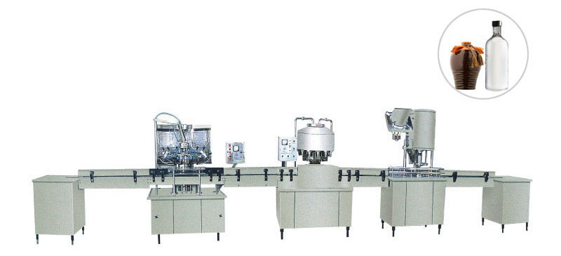 白酒灌装机械是一种由微电脑(PLC)可编程控制,光电传感,气动执行于一体的高新技术灌装设备。白酒灌装机械专用于白酒、保健酒、酱油、醋、调味品、植物油、糖浆、矿泉水等可食性液体的灌装。灌装计量准确,无气泡,无滴漏。可适用于25-1000ml各种瓶形(包括异型瓶)的灌装。