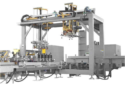 码垛机是将已装入容器的纸箱,按一定排列码放在托盘上,进行自动堆码,可堆码多层,然后推出,便于叉车运至仓库储存。本设备采用PLC+触摸屏控制,实现智能化操作管理,简便、易掌握。可大大地减少劳动人员和降低劳动强度。