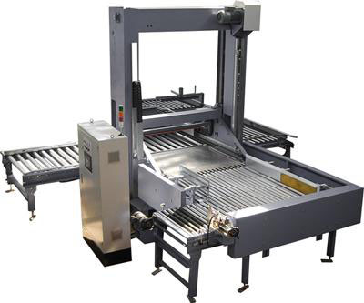 Ø 当纸箱按一定的排序形成一组(层)后升降机载着排序层上升并向前移动至码垛装置上部,并平稳地放在栈板(或前一排序层)上,以形成自动码垛。码垛装置是依靠变频马达和链条来完成其升、降和前进(后退)的。